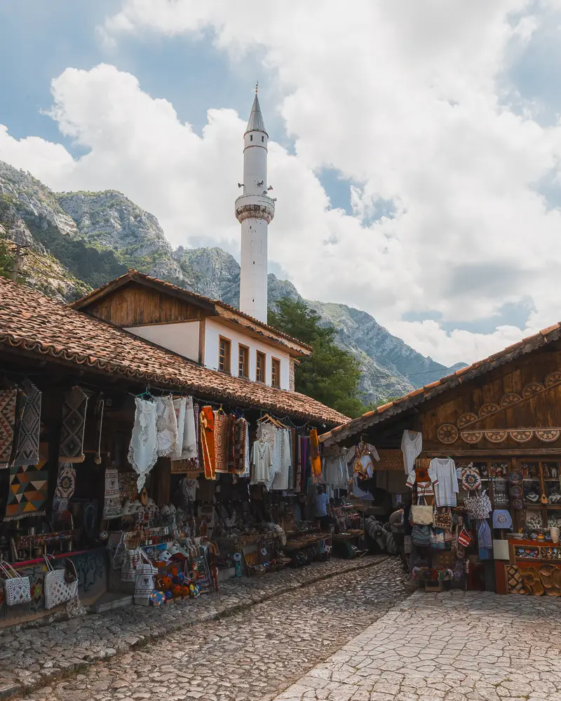 Op weg naar Tirana is Krujë een logische tussenstop. Het stadje ligt tegen een bergflank en staat vooral bekend om zijn oude bazaar, waar je door smalle straatjes wandelt vol kleine winkeltjes en souvenirs.