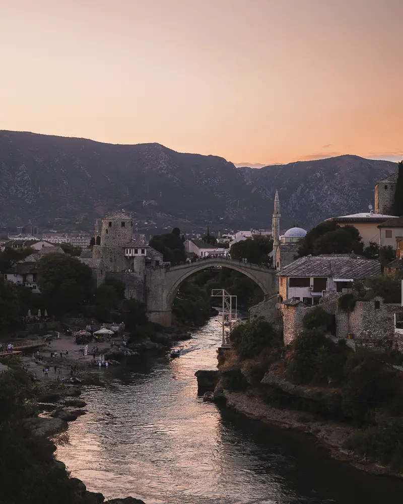 Mostar is de laatste stad die je bezoekt in Bosnië. Ondanks de drukte rond de bekende brug Stari Most is het een aangename stad om door te wandelen, met genoeg plekken om even te zitten en iets lekkers te eten of te drinken. Met een beetje geluk zie je er ook locals van de brug duiken.