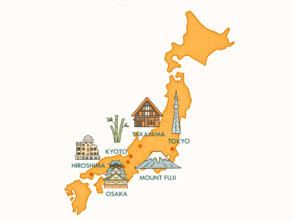 Japan is groot en divers, maar met de juiste route hoef je geen compromissen te sluiten. Deze planning combineert het rijke erfgoed van Kyoto, het stedelijke spektakel van Osaka en Tokyo, het natuurschoon rond Fuji en de tijdloze charme van dorpen als Takayama en Magome. Elke stop biedt een ander facet van het land – van futuristische skylines tot houten huisjes in de bergen.