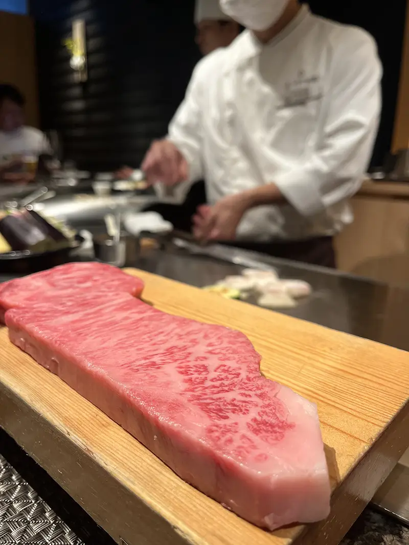 Eten in Japan is een feest… en verrassend betaalbaar. Streetfood kost zelden meer dan €3-€6 per item. Ramen bestel je vaak via een automaat en kom je rond de €7 uit. Sushi kan extreem goedkoop zijn bij ketens zoals Kura Sushi, terwijl een uitgebreide omakase-ervaring zoals die bij Manten Sushi tot €80-€140 per persoon kan oplopen. Een wagyu dinner in Kyoto kostte ons €70 per persoon, maar dat was dan ook A5 Kobe beef — een once-in-a-lifetime bite.