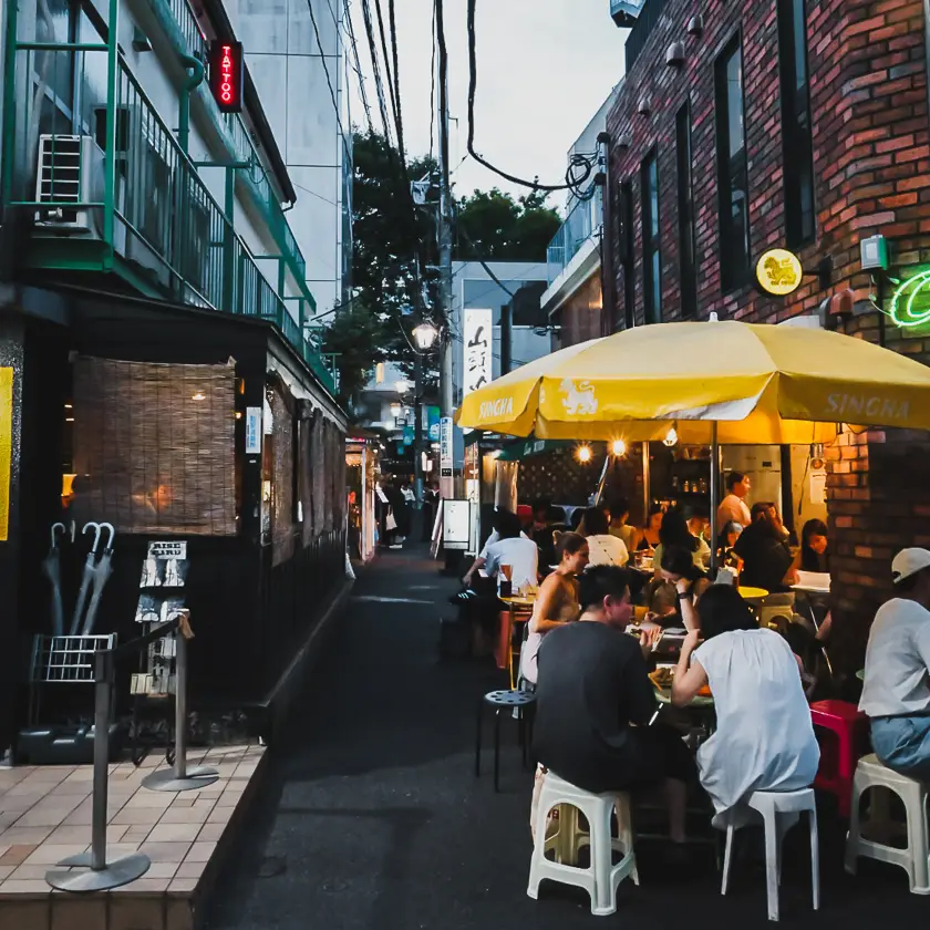 Golden Gai bestaat uit zes smalle straatjes met meer dan 200 microbarretjes, elk met een eigen thema. Denk aan rockbars, jazzgrotten, tiny speakeasies en bars versierd met filmmemorabilia. Het is een unieke plek waar je makkelijk locals en reizigers ontmoet. De sfeer is ongedwongen en intiem, ideaal om je eerste Tokyo-avond af te sluiten.