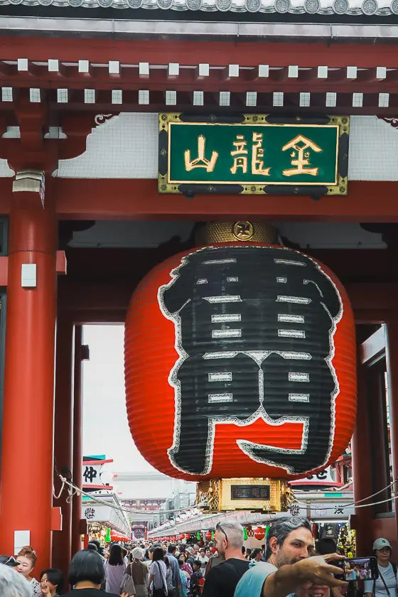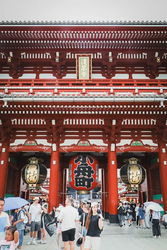 Nakamise-Dori is een levendige straat vol kraampjes waar je traditionele snacks, kimono-accessoires en Japanse zoetigheden vindt. Kaminarimon, met zijn enorme rode lantaarn, is een iconisch fotomoment dat de toegang tot Asakusa markeert. Dit is ook de plek om je laatste souvenir op te pikken of je geluk te testen bij een van de vele kraampjes.