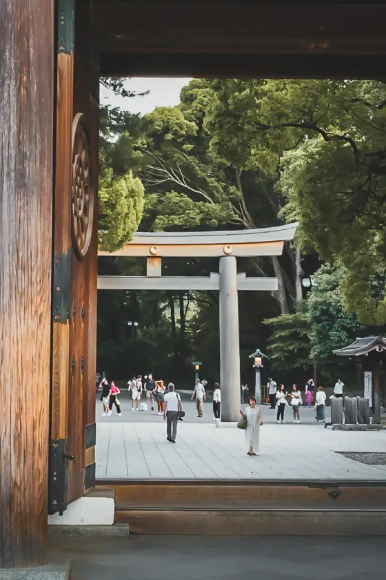 Meiji Shrine ligt verscholen in een uitgestrekt bosgebied, waardoor het voelt alsof je even de stad achter je laat. De imposante houten poorten, rustige wandelpaden en ceremonieën die je soms kunt zien maken dit een heel bijzondere plek. Daarnaast kom je langs de iconische rijen sake‑vaten – tonnen met Japanse karakters en kleurrijke emblemen, geschonken door brouwerijen uit heel Japan als eerbetoon aan de keizerlijke familie. Het is een van de meest bezochte schrijnen van Japan, maar door de grote oppervlakte voelt het nooit té druk.