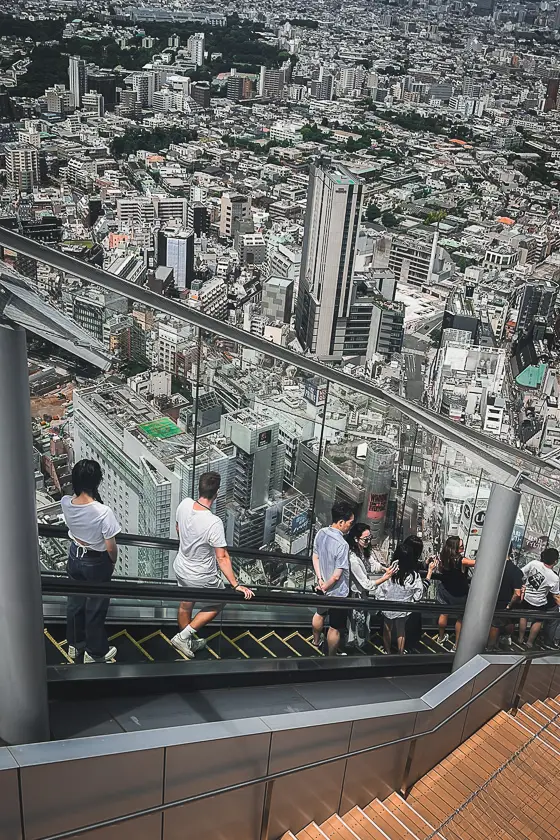 Shibuya Sky biedt een 360° panorama over de stad, inclusief zicht op Mount Fuji bij helder weer. De rooftop is prachtig ontworpen met glazen wanden, loungestoelen en een open platform. Het is een van de populairste plekken in Shibuya, dus op voorhand reserveren is cruciaal. Hier voel je echt hoe immens Tokyo is, met enkel gebouwen zover het oog reikt.