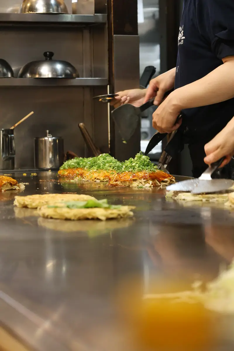 In Hiroshima aten we okonomiyaki zoals je die nergens anders krijgt. De lagen kool, noodles, ei en saus worden op een grote bakplaat gestapeld, waardoor het gerecht stevig, rijk en ongelooflijk smaakvol wordt. Het is een perfecte tegenhanger voor de Osaka-variant, waar alles wordt gemengd tot één beslag. Zeker het proberen waard als je beide steden aandoet: het is opvallend hoe groot het verschil in textuur en smaak is. Een van DE absolute toppers van onze reis door Japan. Wij aten hem bij Nagataya.